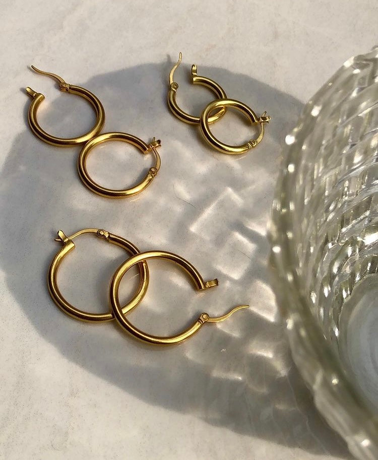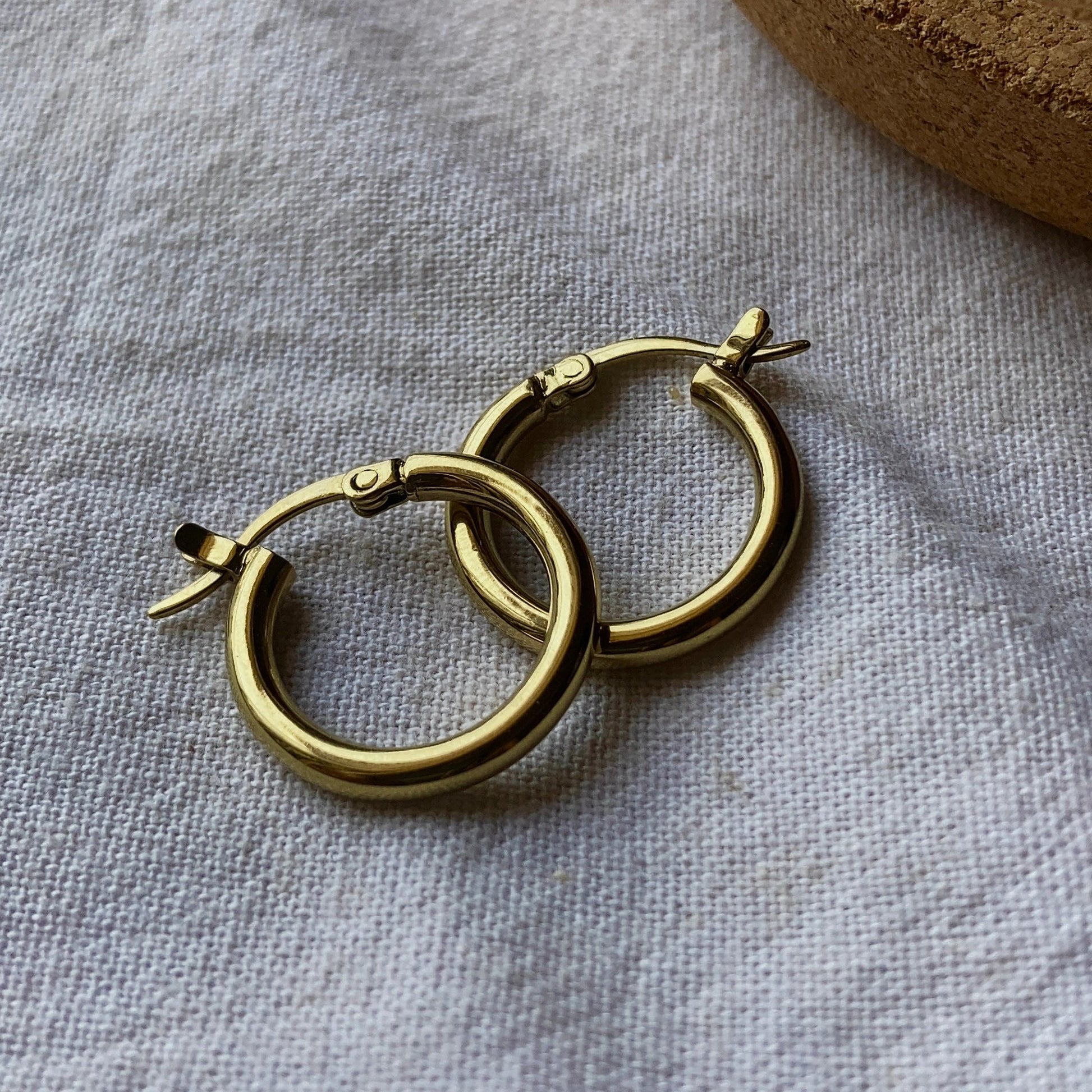 Made in 100% hypoallergenic hypoallergenic brass, our hoops are also anti-tarnish, waterproof and shower-friendly Dimensions: these hoops measure 18 mm in diameter