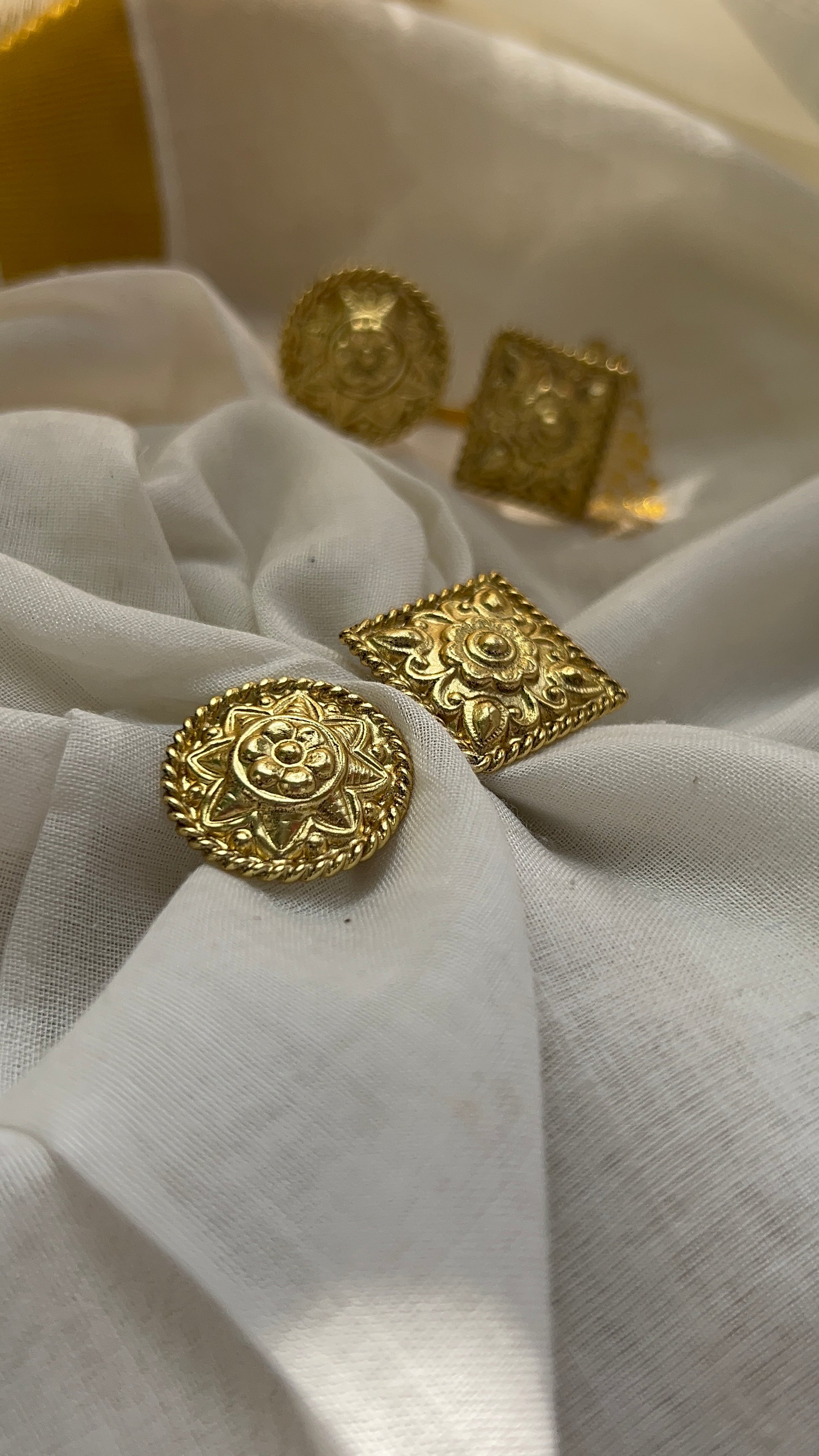 Made in hypoallergenic brass and plated in antique 18k matte gold plating