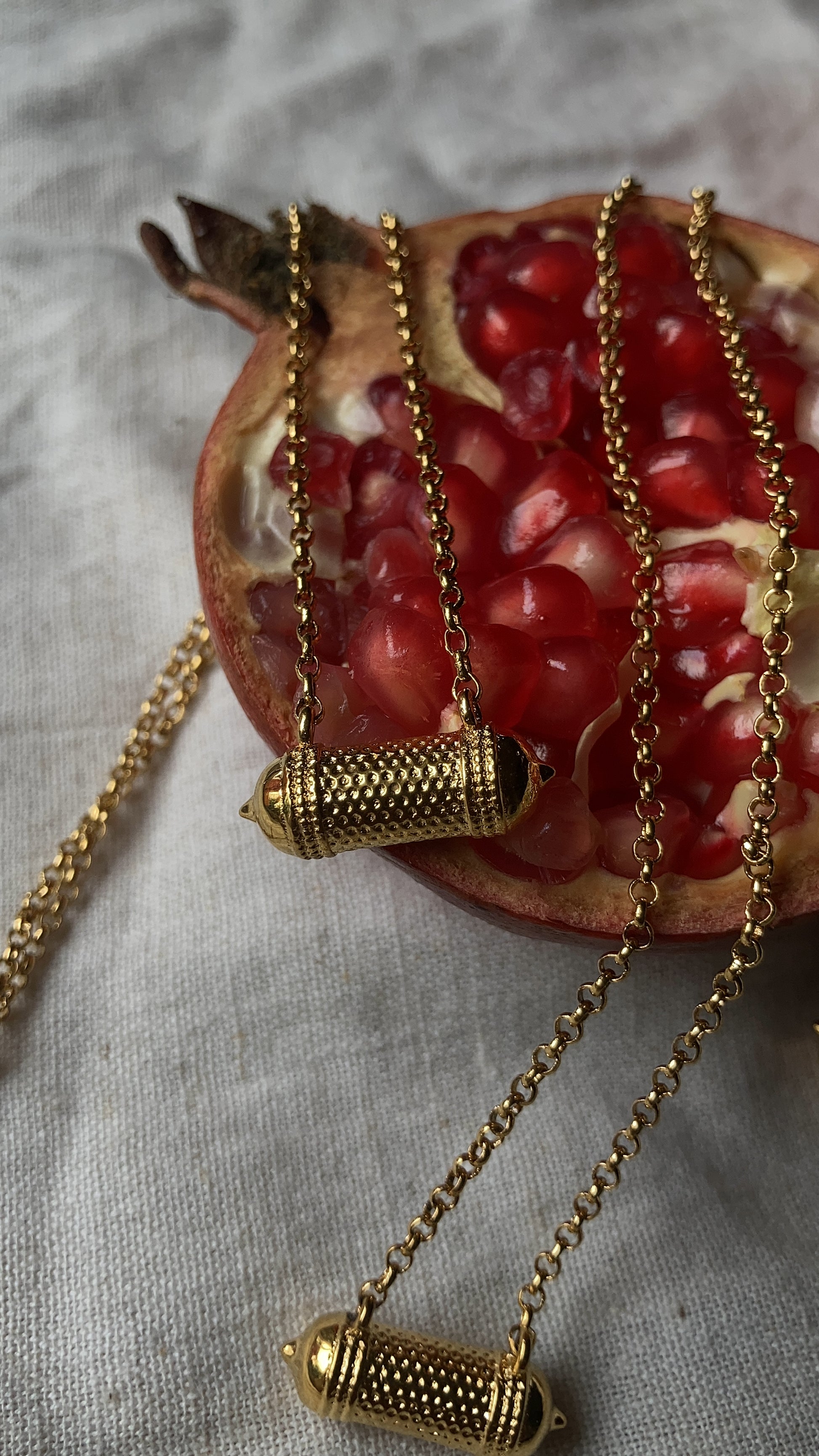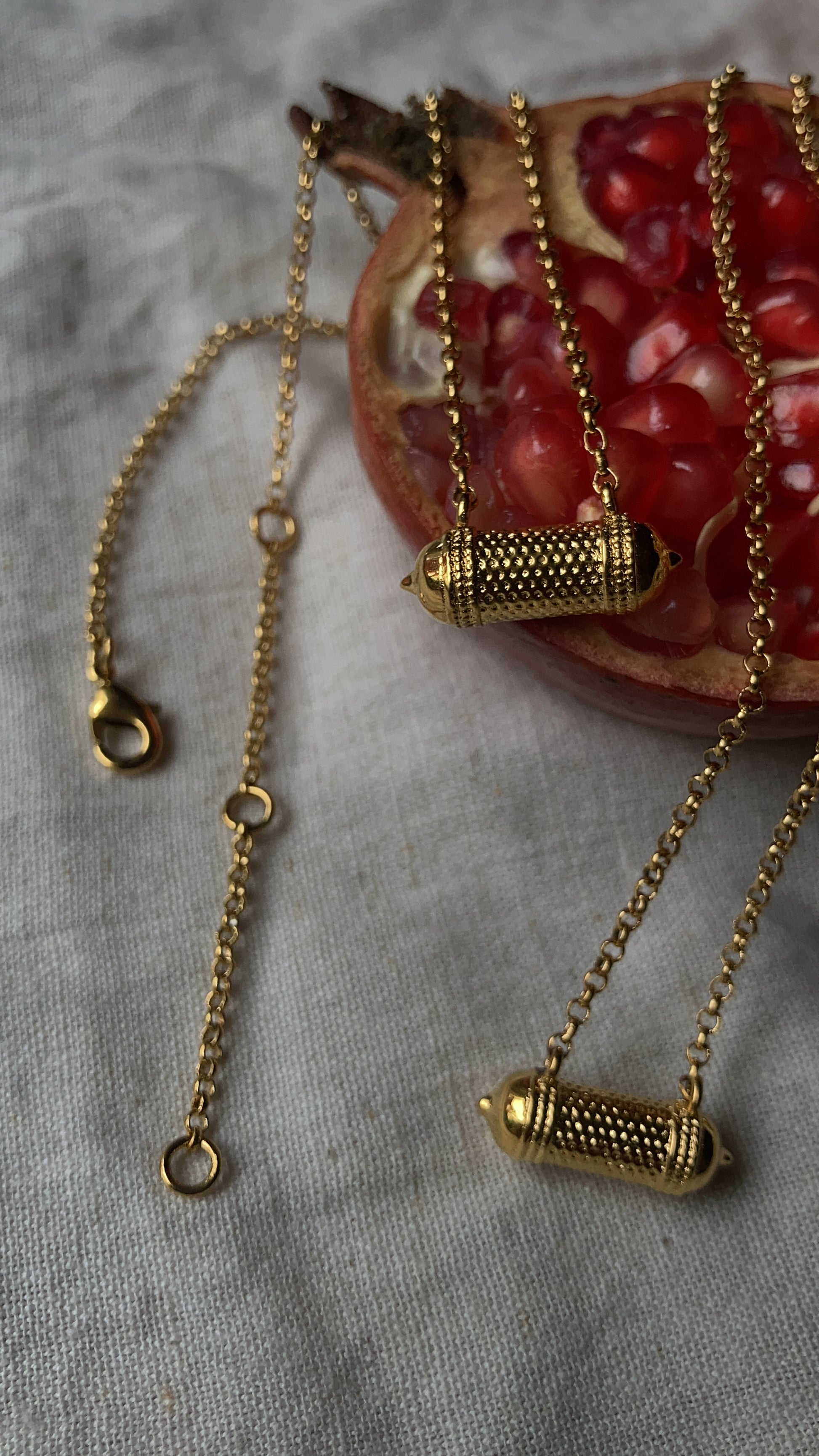 Taweez is an Urdu word rendering of the Arabic word ‘ta’weedh’ which is another term used for tameemah. A tameemah can be defined as an object which is hung on someone or something with the belief that it has the power to repel harm or bring about good fortune. Therefore the words taweez and tameemah are often translated as amulet, charm or talisman. We named this chain Duaa such that it always remains close to you as a blessed prayer!