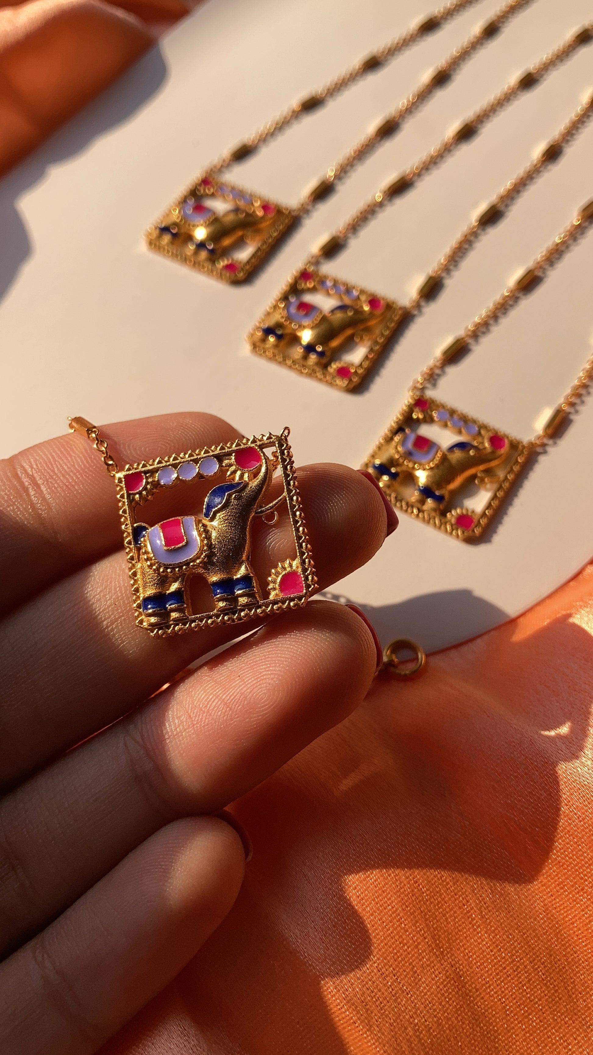 Did somebody say “ELEPHANTS” because YES! We are obsessed! Elephants are said to carry everlasting luck in their trunks and symbolise power, strength, royalty and wisdom.Enamelling or meenakari work is a very popular process of grooving or engraving ornaments in ornaments and has been prevalent since ages, originating from Persia!