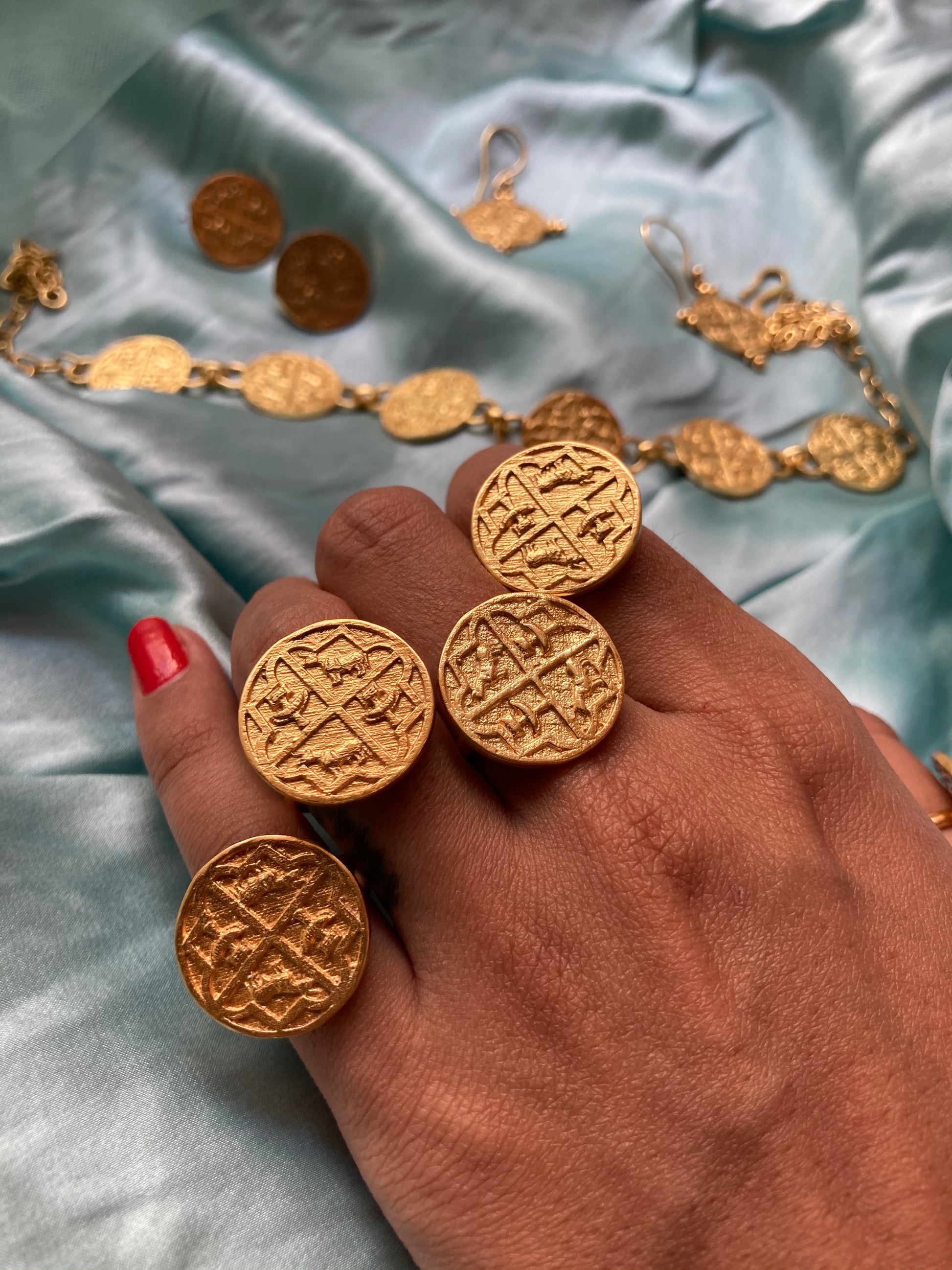 Made in 100% hypoallergenic brass and coated in 22k gold plating, you could use our pretty choker as necklace! Dimensions: Adjustable in size. Coin size: 0.75" x 0.75"
