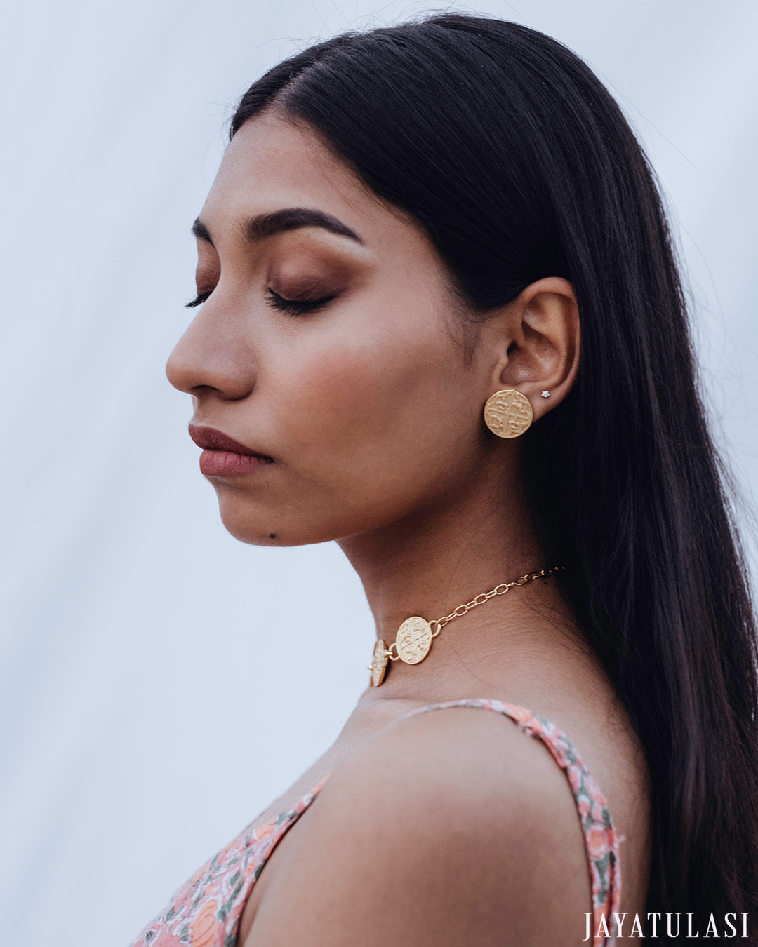 Like all jewellery, our pieces require a little bit of care and attention to keep them looking as new and shiny as when you received them. Avoid wearing your aarka. jewellery in shower, refrain contact with perfumes and lotion. For gold plated jewelry, occasional cleaning with a soft cloth will keep your jewelry shiny and remove the oxidation, however, excessive polishing may rub off or scratch the plating and store your jewellery in the velvet pouch that was sent with your order.