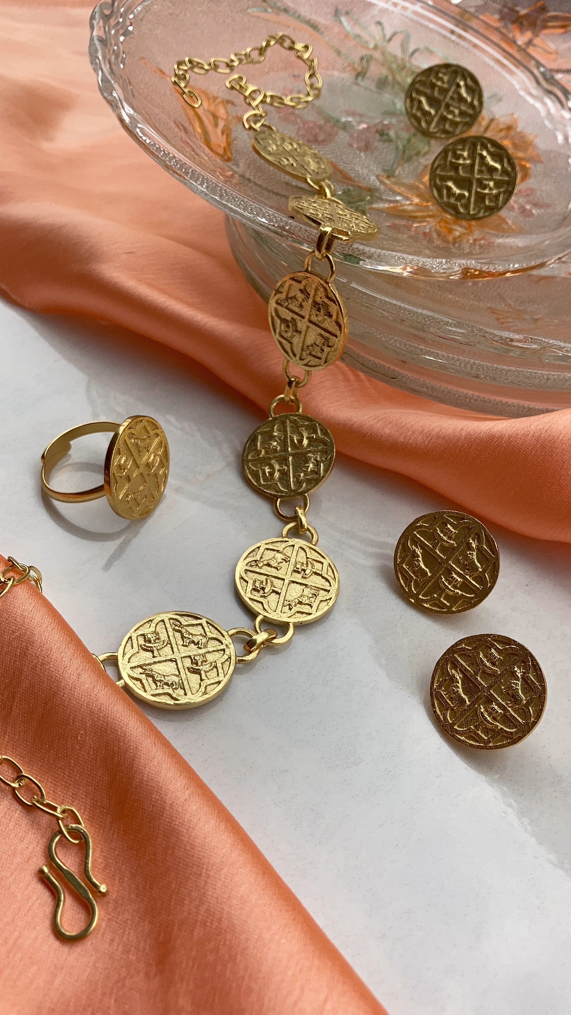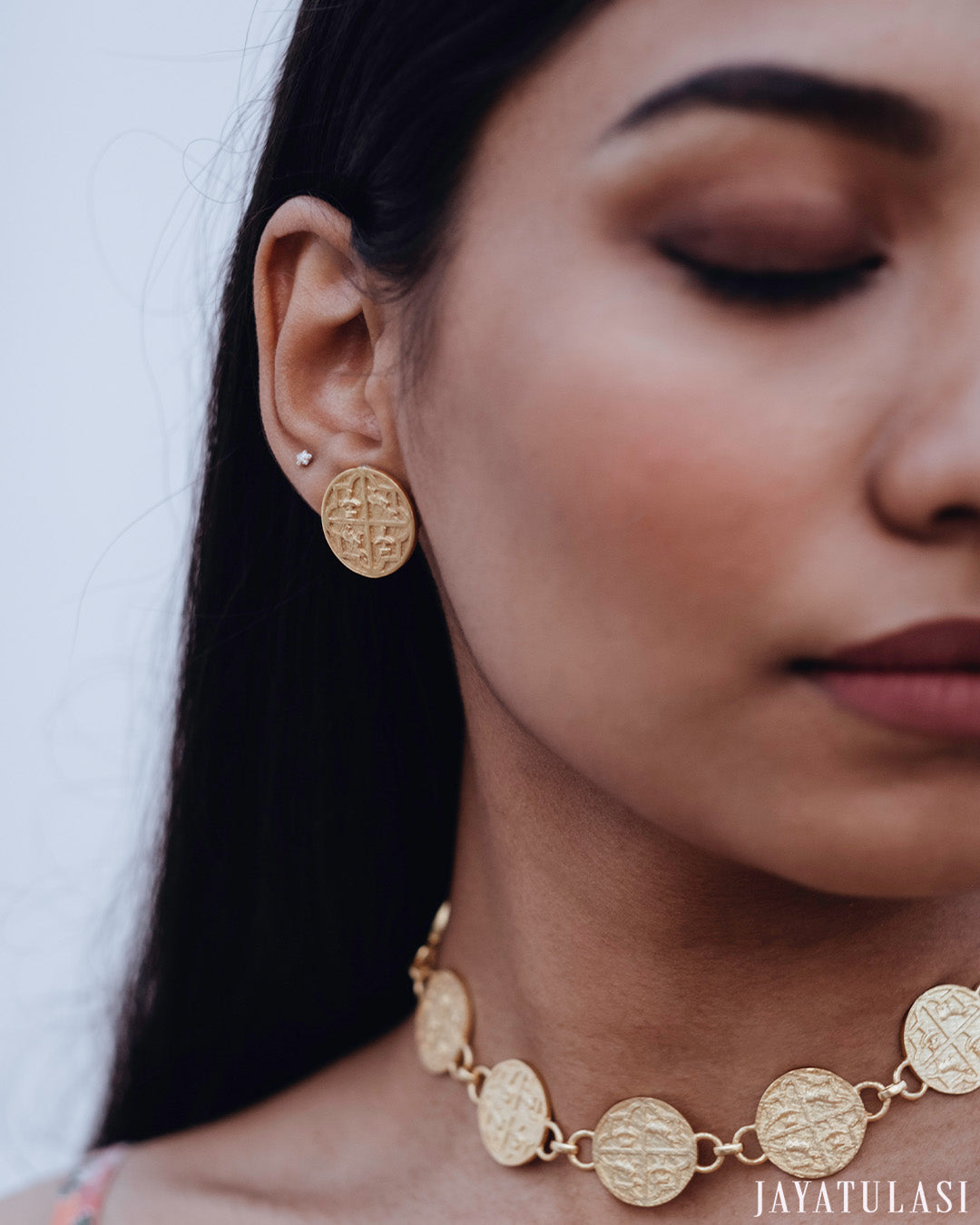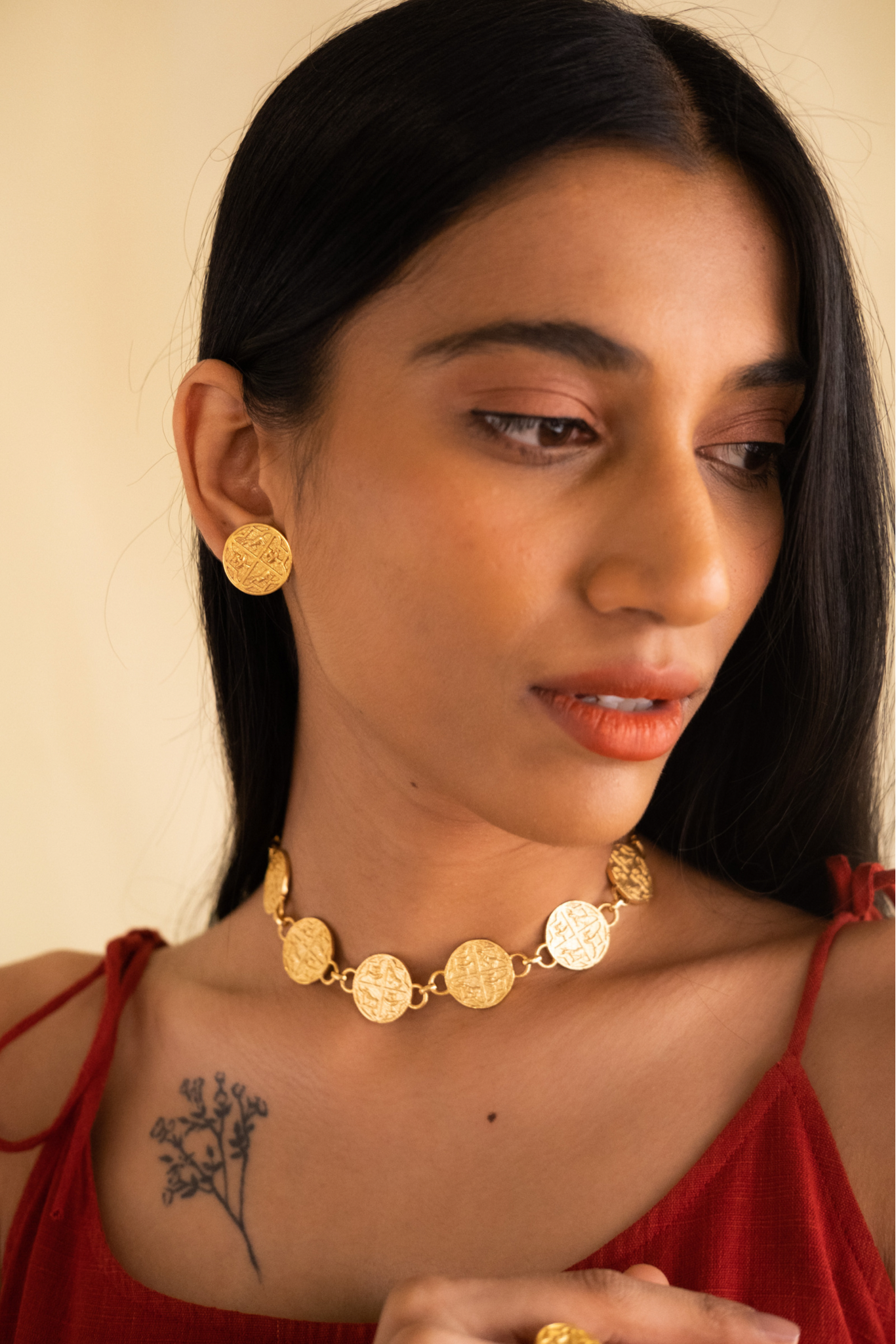 Made in 100% hypoallergenic brass and coated in 22k gold plating, you could use our pretty choker as necklace! Coin size: 0.75" x 0.75"