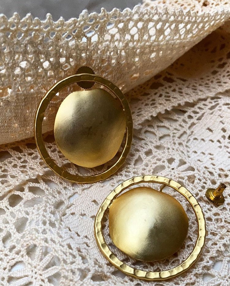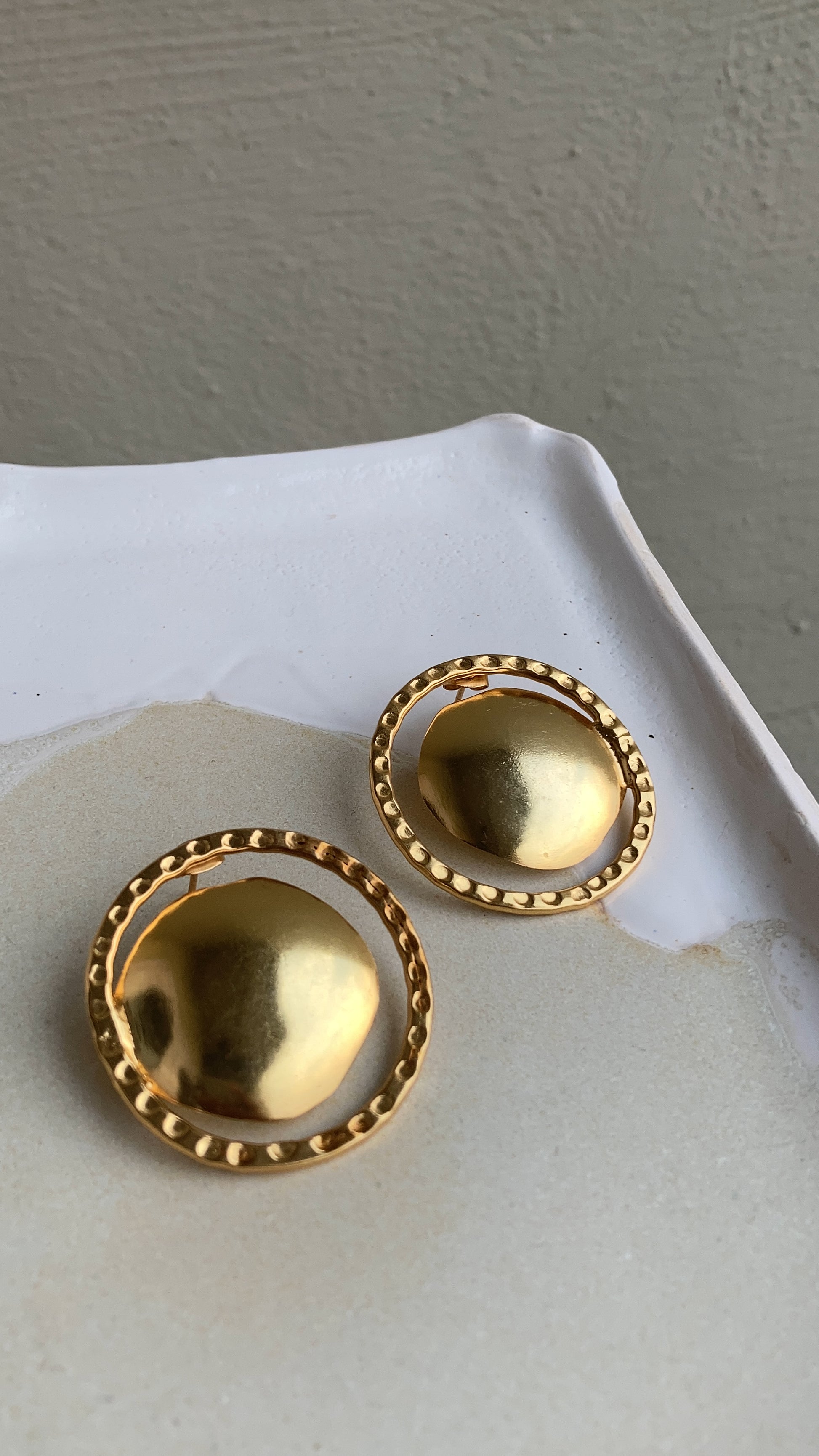 Handcrafted in hypoallergenic hypoallergenic brass and coated in 22k gold plating. Dimensions:1.5" in its diameter