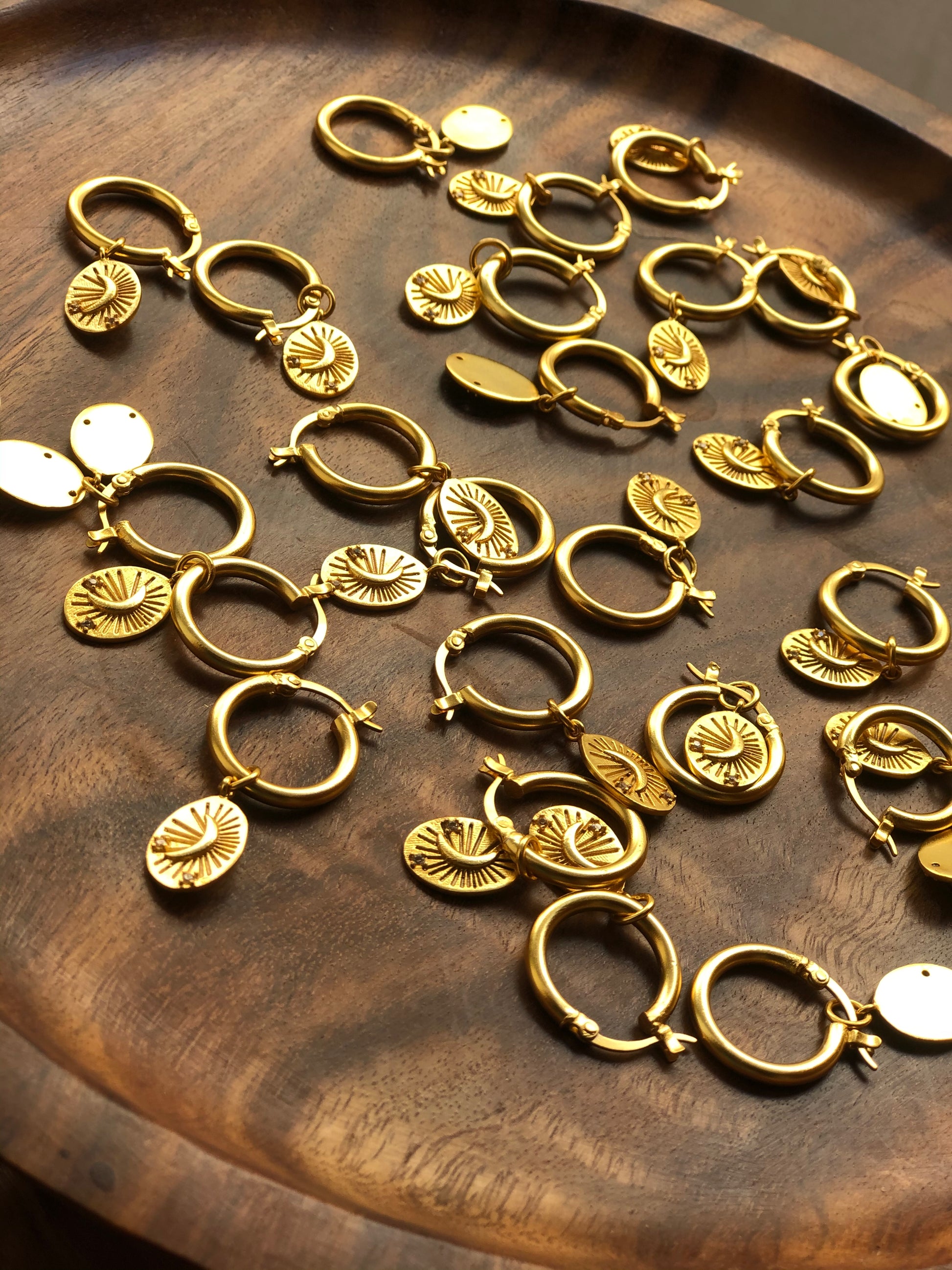 Made in 100% hypoallergenic brass our hoops are tarnish free and from the waterproof collection, the size of these hoops is 18mm and the charms 22k gold plated and of course detachable! Dimension of the charm 0.5" x 0.35"
