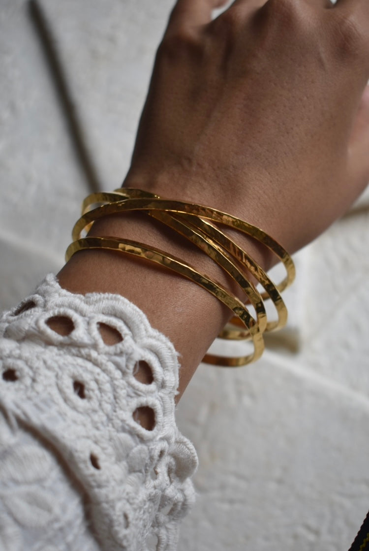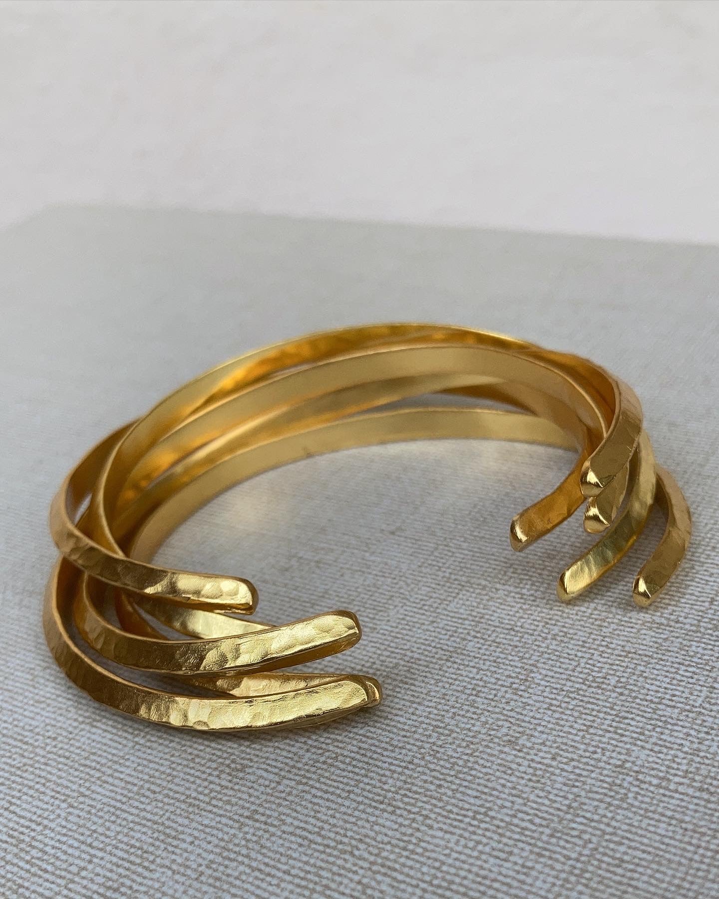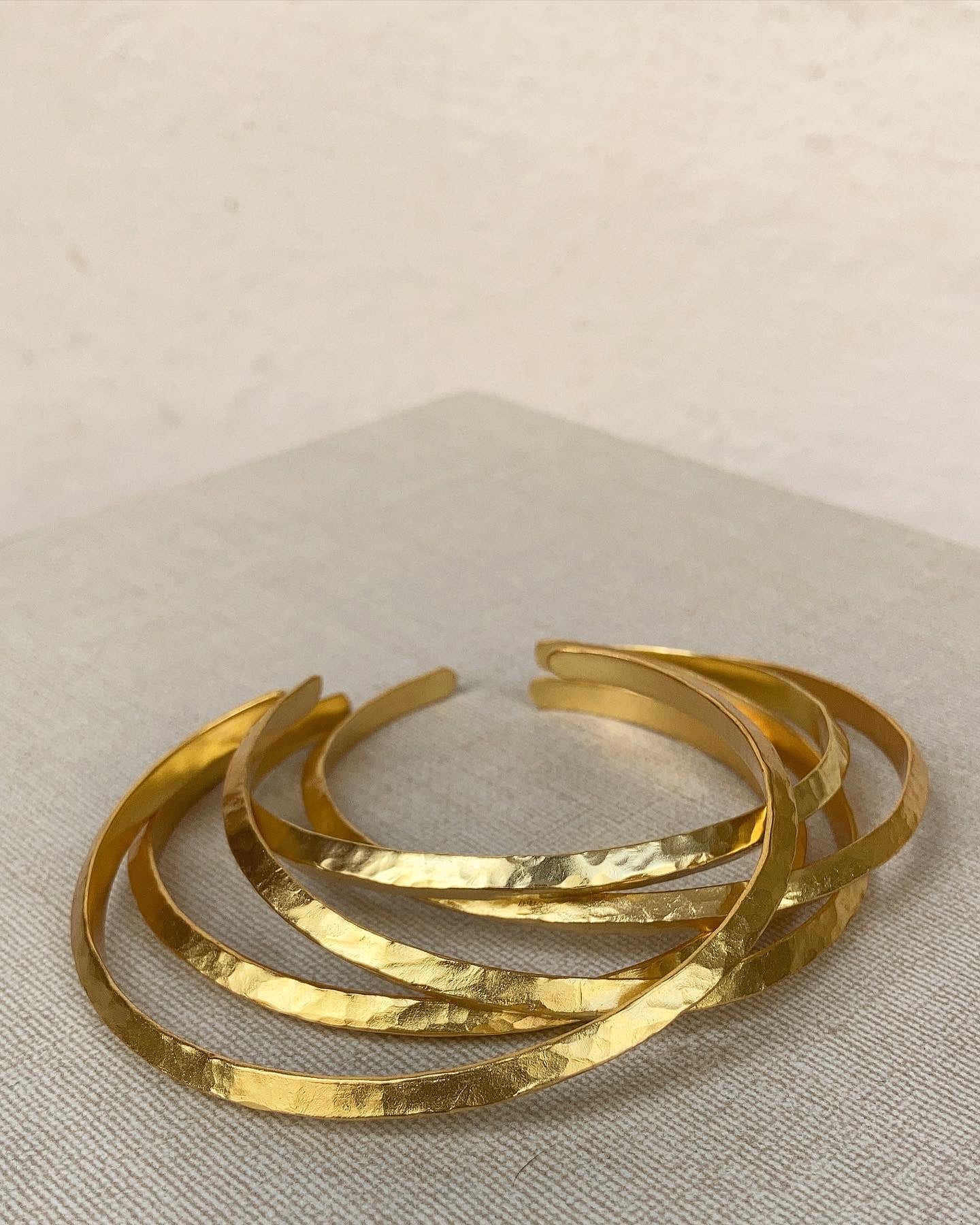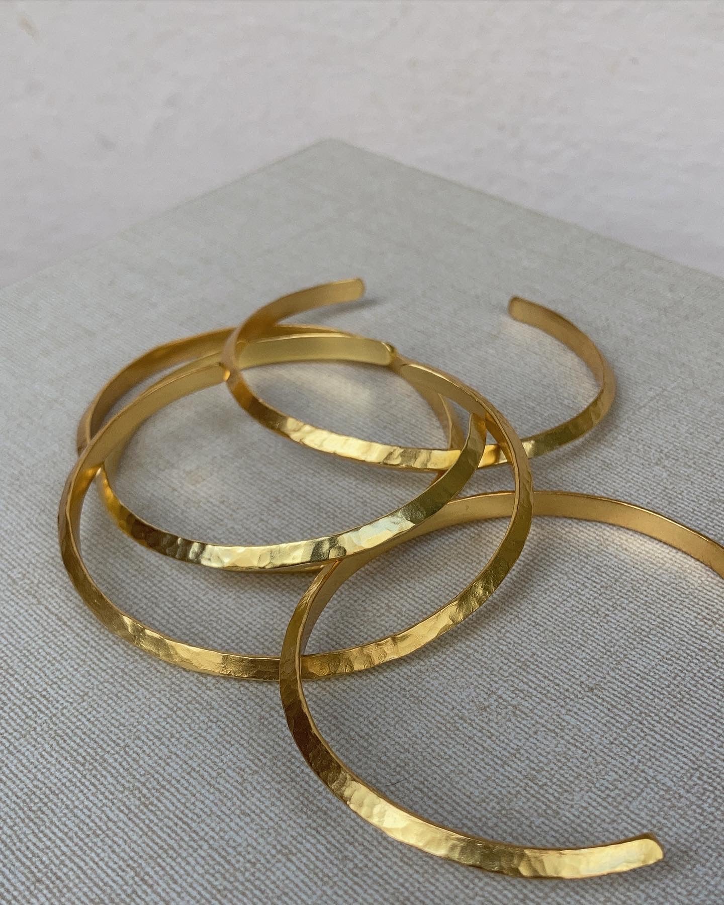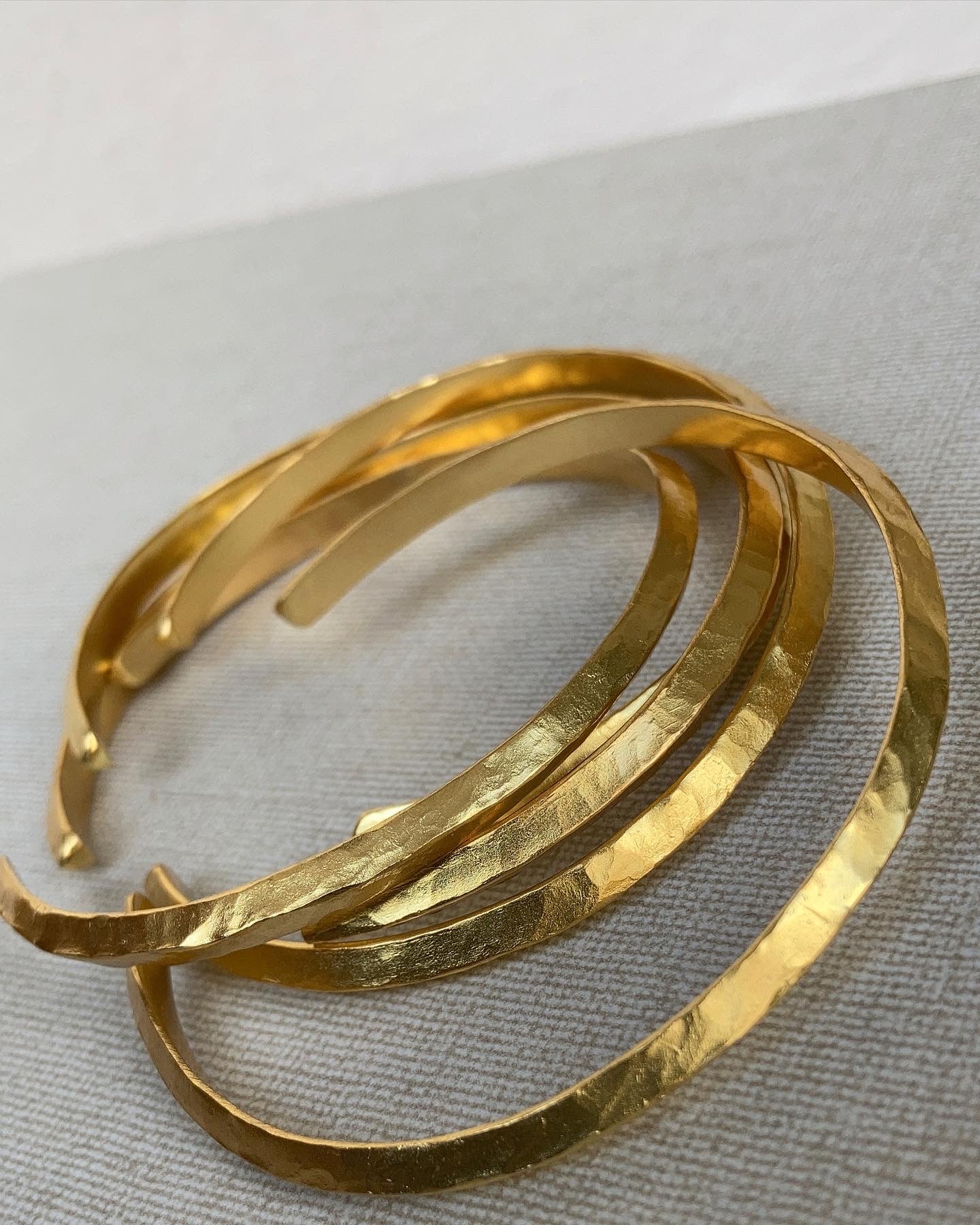 Simple, organic hammered texture and a custom fit to your wrist and a solid 22k gold plated body