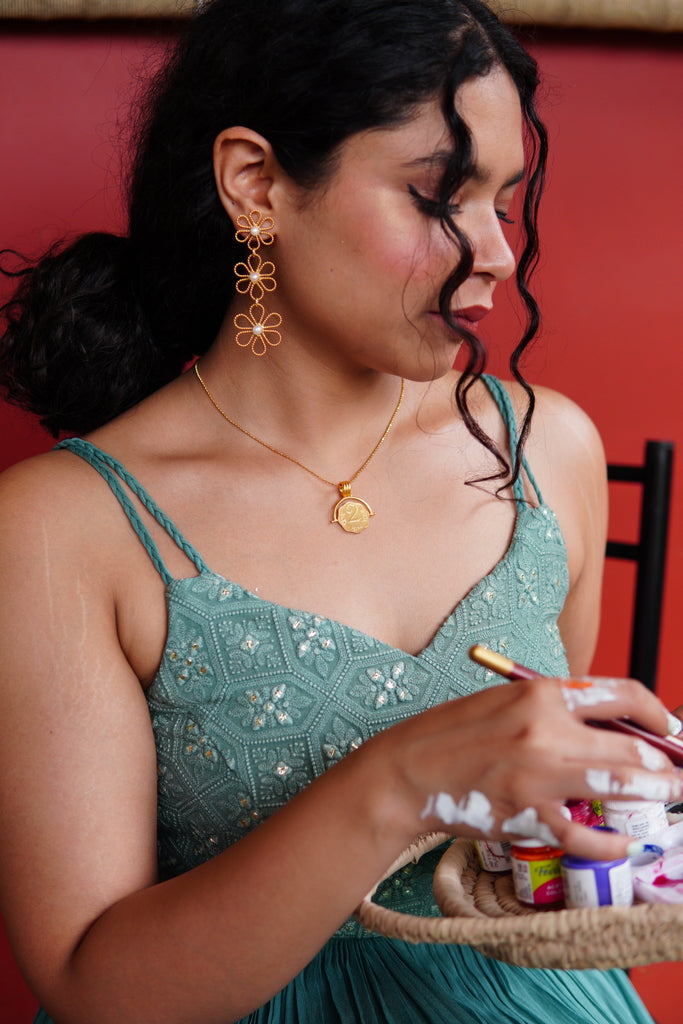 Made in 100% hypoallergenic brass and coated in 22k gold plating. Dimensions of the pendant is : 1 inch in its diameter. The chain measures, 16+3 inches in its length.