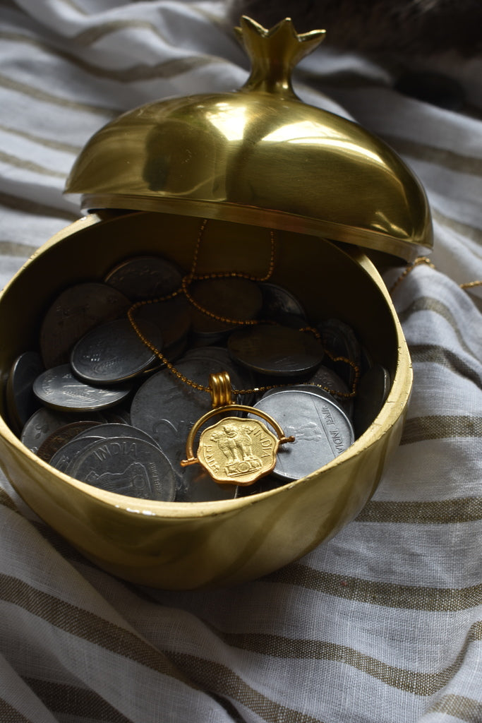 From a mother's coin collection, inspired is the cherished RUPAYAR CHAIN, a tiny 2 paisa coin, passed down through generations. Its golden hue glimmers with memories, a link to most family's history.