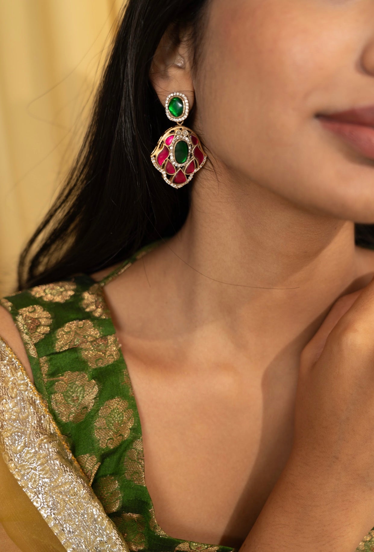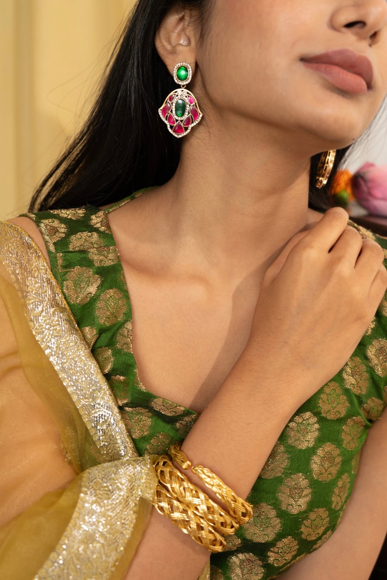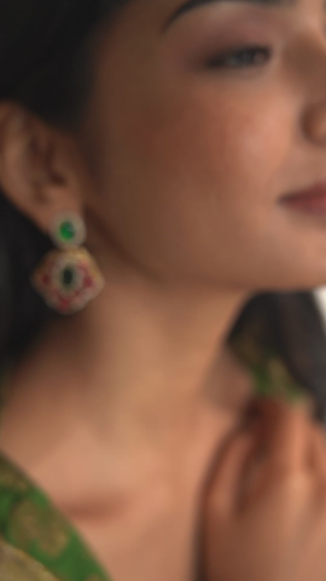 Pink is the new Black. With the festive season upon us, we bring to you the Urvi set that compliments two colours together with embellished zirconias surrounding.