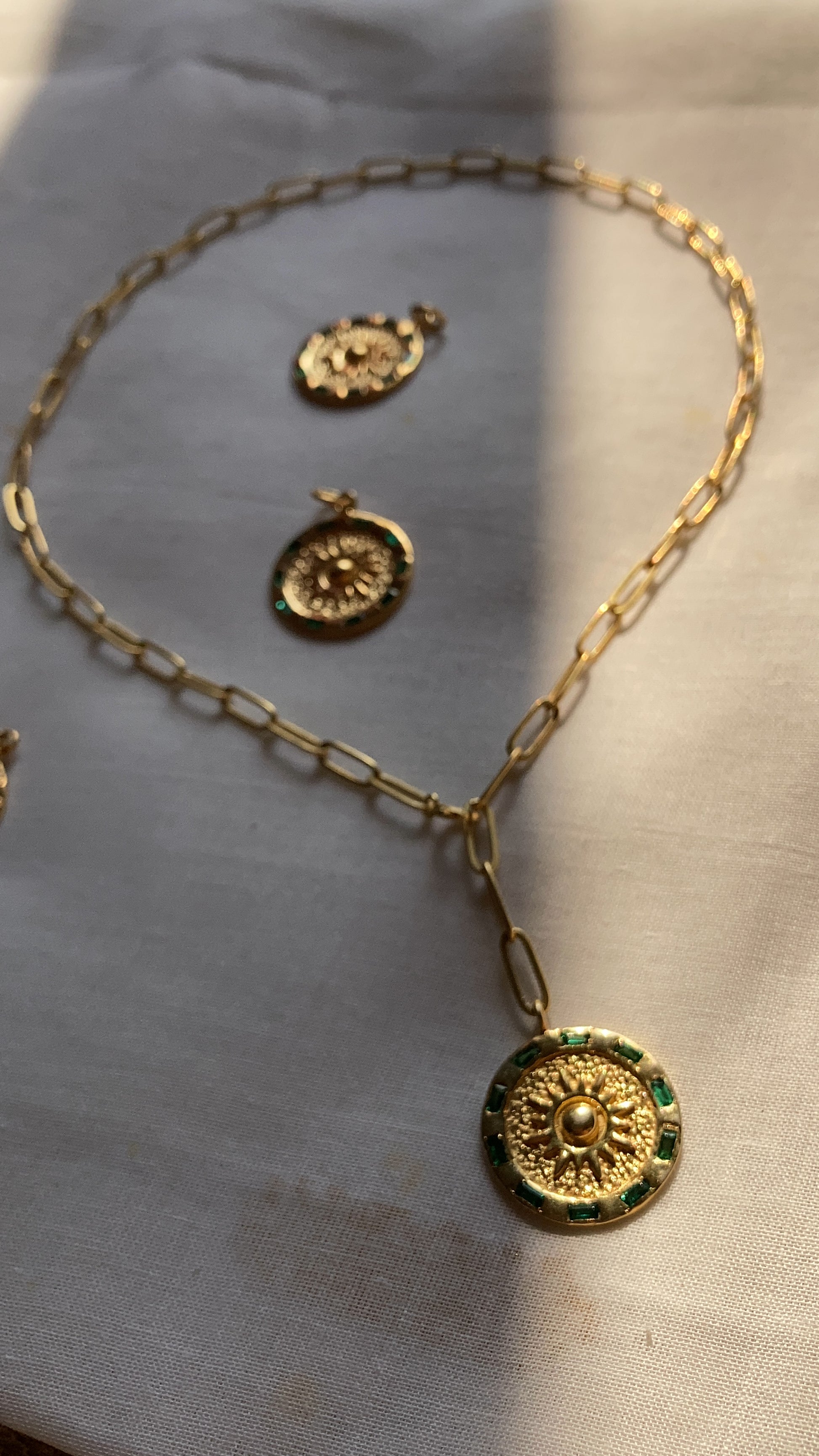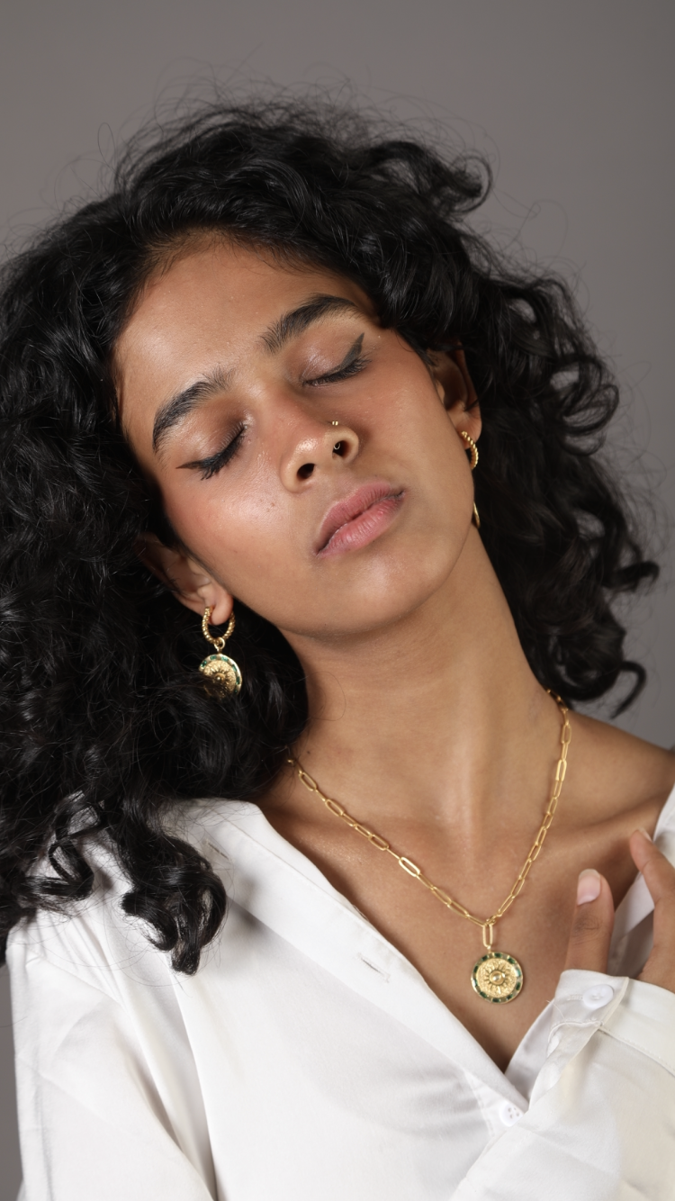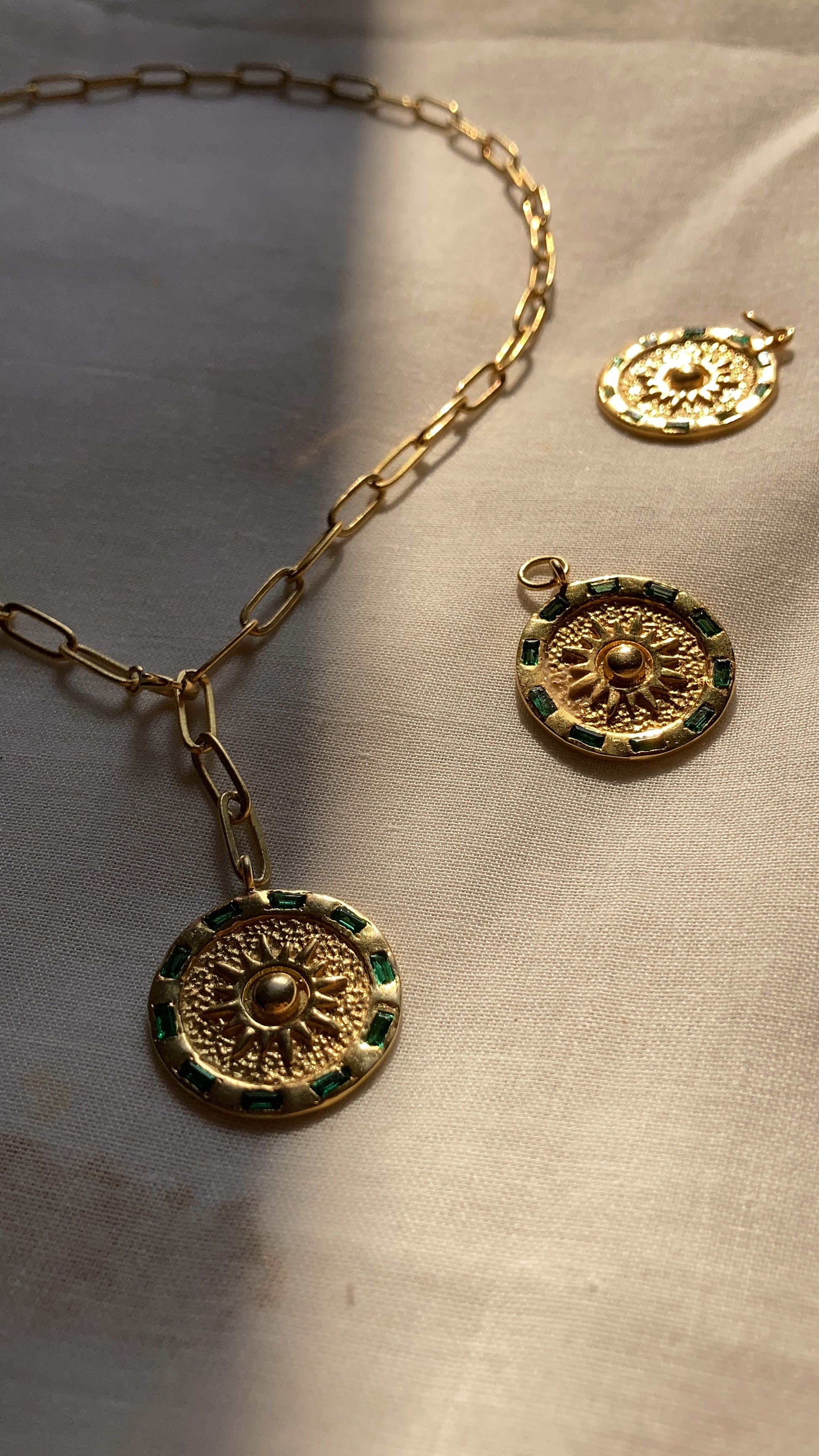Finish your look with our stunning, handcrafted Surya Chain that are a true standout! The emerald zirconia stones definitely add to the beauty of this piece making it a total stunner!
